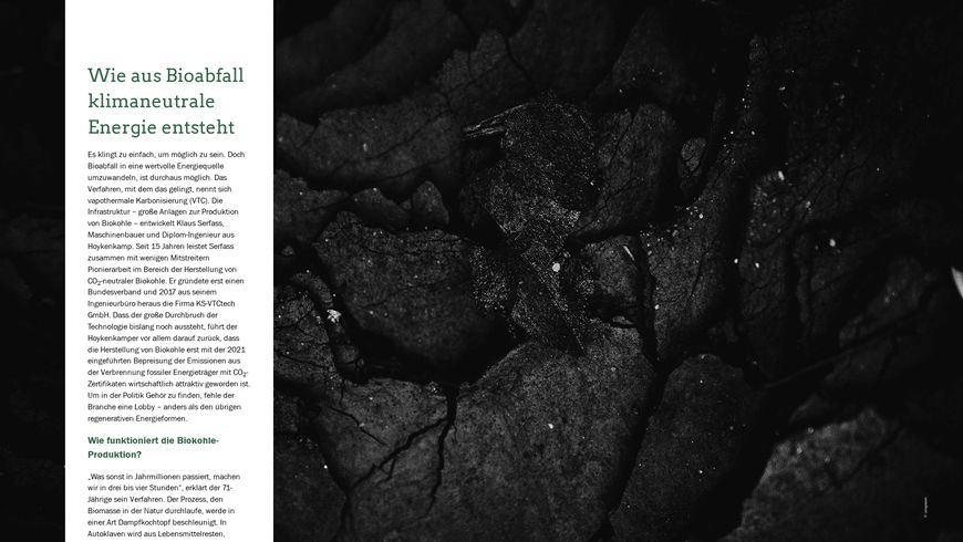 Das Verfahren, mit dem das gelingt, nennt sich vapothermale Karbonisierung (VTC).