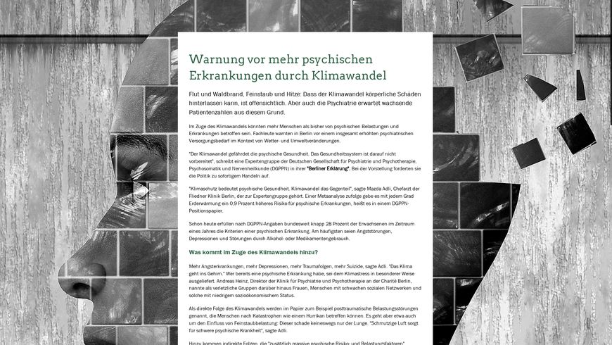Flut und Waldbrand, Feinstaub und Hitze: Dass der Klimawandel körperliche Schäden hinterlassen kann, ist offensichtlich.